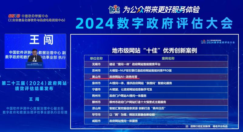 黃山市“政府網(wǎng)站AI+政務(wù)問答”入圍地市級政府網(wǎng)站“十佳”優(yōu)秀創(chuàng)新案例。